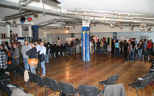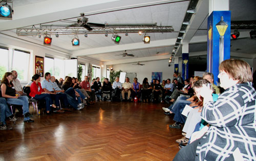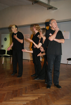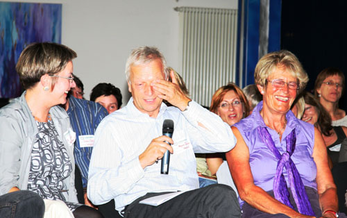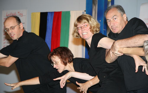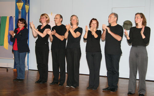 Abschließend finden Sie das Workshopdesign und einige Impressionen aus einem besonders gut gelungenen organisationsbezogenen Projekt, einem Workshop zur Erneuerung des Leitbildes mit der gesamten Belegschaft der Lebenshilfe Gießen, ca. 100 Personen, den ich mit einer Projektgruppe aus der Organisation zusammen vorbereitet und in Kooperation mit Marlies Arping und dem Frankfurter Playbacktheater „Spiegelbühne“ durchgeführt habe.